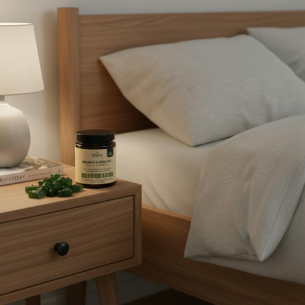 Magnesium und Vitamin D fördern natürliche Entspannung für tiefen, regenerierenden Schlaf.